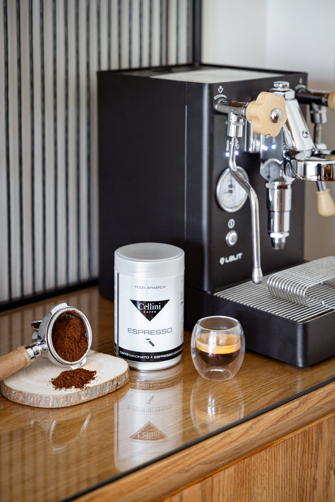 Este café molido de alta calidad se elabora a partir de una cuidadosa selección de granos, tostados a la perfección para resaltar notas de chocolate y frutos secos. Es una mezcla de café 100% arábica para máquinas de espresso domésticas.